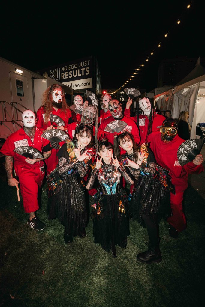 一見神バンドと一緒に写ってるだけとおもっていまうが、SLIPKNOTである。完全に顔がひきつってます。ボーカルのCorey TaylorがBABY METALの大ファンであり、素顔でもBABY METALのライブをよく観戦するようだ。