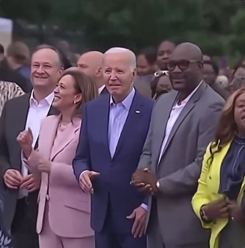 皆が音楽に合わせて動く中で、バイデン大統領だけが独特な手の動きを見せました。何か特別なものが見えていたのかもしれませんね。